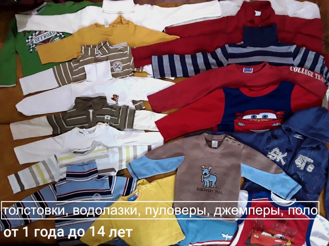 1) школьный: джемперы, тёплые и лёгкие батники, кофта, свитеры, пуловеры, водолазки, толстовки, поло – недорого 20-50 руб. Есть много. На фото всё не поместилось, спрашивайте что нужно