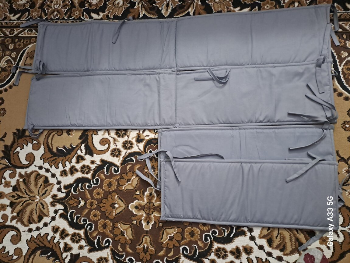Продам новый комплект в детскую кроватку. Подходит для мальчиков и девочек. Сделан бортик из мягкой, дышащей ткани. Подлежит машинной стирке при температуре ниже 30С. Размер 132*24,5 см и 68,5*24,5 см.