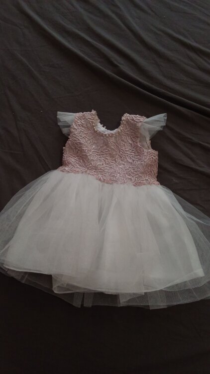 Платье с розовой вставкой, на рост 77 до колена (одевали 1 раз) - 25р