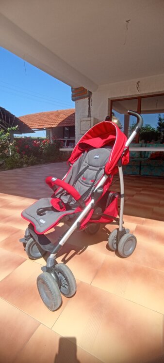 Хорошее состояние, очень удобная. Складная по типу трости, но намного прочнее. Идеально подходит для проселочной дороги. Маневренная и лёгкая. В комплекте дождевик и теплая накидка на ножки. Торг уместен.