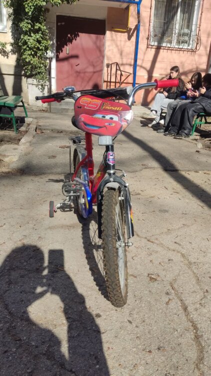 Продается детский велосипед с боковыми колесами (нужно обслужить накачать колеса (возможно заменить камеры), смазать) - 150 рублей
