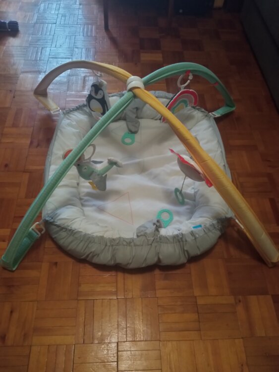 Продам развивающий коврик с бортиками для ребенка. В комплекте игрушки, которые крепятся на дуги, в том числе музыкальная с несколькими режимами. Бортики защищают ребенка от падения. Коврик легко стирается и компактно укладывается в прозрачный чехол. В отличном состоянии.
