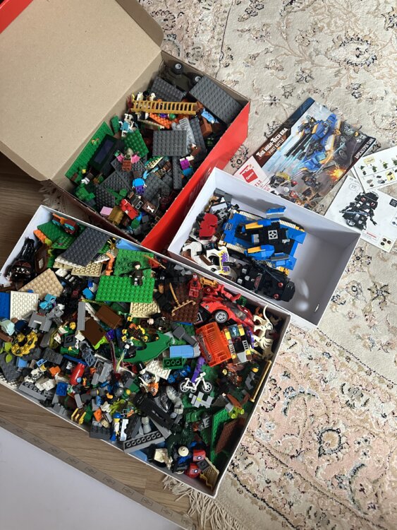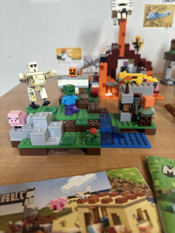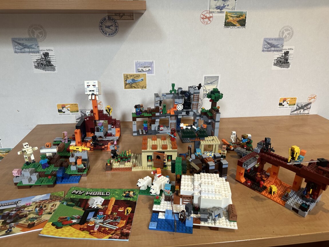 Продаю большой набор LEGO: есть как собранные модели из серии Minecraft, так и много деталей россыпью.