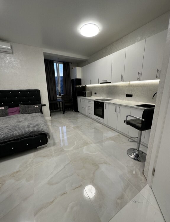 22543Квартира полность укомплектована мебелью и техникой. Качественный ремонт,по всему периметру квартиры пол с подогревом.Новый дом,есть место для авто,зона отдыха и место для барбекю.На первом этаже магазин.Заходи и живи с комфортом.