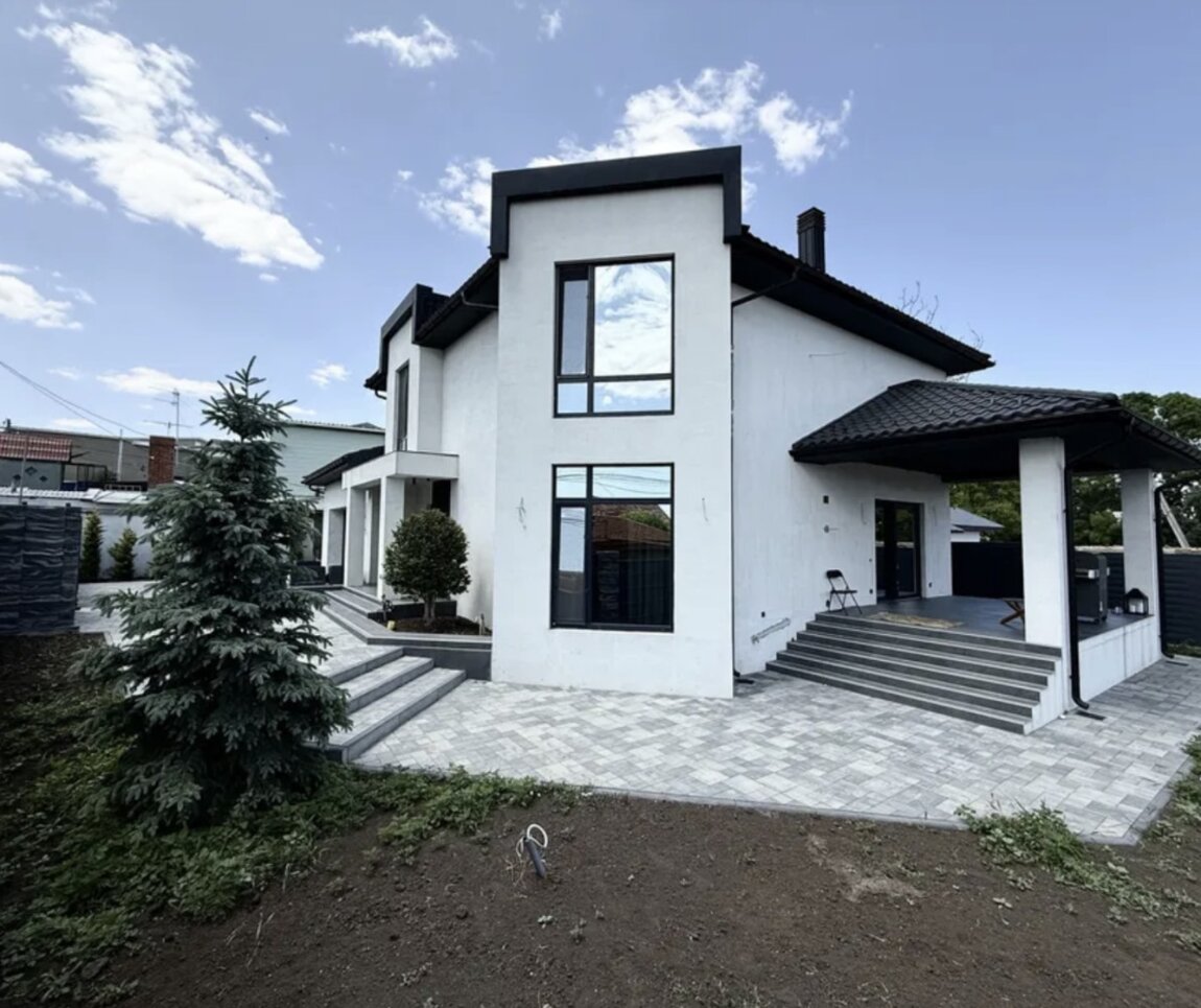 33997 Продам новый дом в 20 минутах от Центра города.Построен в 2025 году по индивидуальному проекту в стиле Loft.Общая площадь 273 кв.м, участок - 8 соток. Распланирован на 3 спальни и кабинет. На первом этаже - кухня гостинная с выходом на просторную террасу. Выполнен ремонт по дизайнеркому проекту, дорогая мебель и техника. Камин.Управление теплыми полами, котел, резервуары для воды. Установлены аккумуляторные батареи на несколько суток автономного потребления всего дома. Зона BBQ и детская площадка. Ландшафтный дизайн. Гараж на два автомобиля со входом в дом.