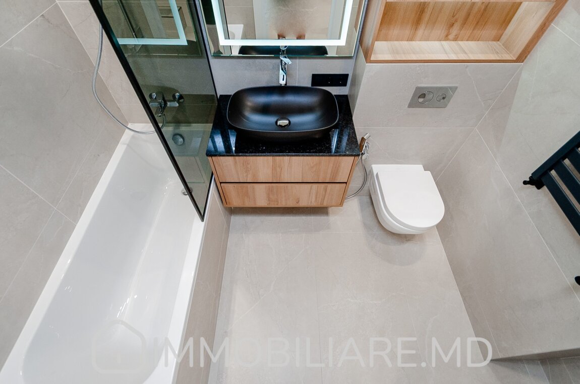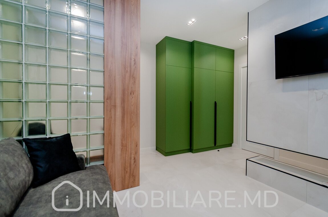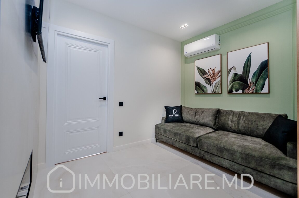 Apartament cu 1 cameră, sect. Centru Vă propunem spre chirie apartament cu 1 cameră și living amplasat în sect. Centru, str. Renașterii Naționale. Zonă cu infrastructură bine dezvoltată. Acces facil la transportul public în orice direcție a orașului. Parcare de tip deschis și loc de joacă pentru copii. Suprafața totală de 50 mp. Nivelul 3/9. Apartamentul dispune de: – aparat de aer condiționat;, – încălzire prin pardoseală;, – geamuri termopan; – mobila și tehnica necesară unui trai confortabil.