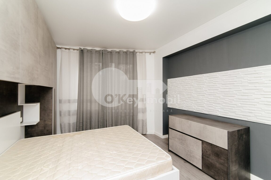 Spre chirie se oferă apartament amplasat pe str. Melestiu, Centru. Fiind poziționat la etajul 1 în bloc locativ nou, lângă Parcul Valea Trandafirilor. Locuința este comodă și dispune de un interior deosebit de plăcut, fiind repartizată astfel: dormitor, living cu bucătărie, bloc sanitar, antreu. Se prezintă cu astfel de facilități precum: – încălzire autonomă, – pardosea caldă, – euroreparație, – mobilat și utilat cu tehnică de ultimă generație, – geamuri termopan, – ușă metalică la intrare. Blocul dispune de parcare subterană, teren de joacă pentru copii. În apropiere de Shopping Malldova, supermarket, farmacie, stație de transport public etc.