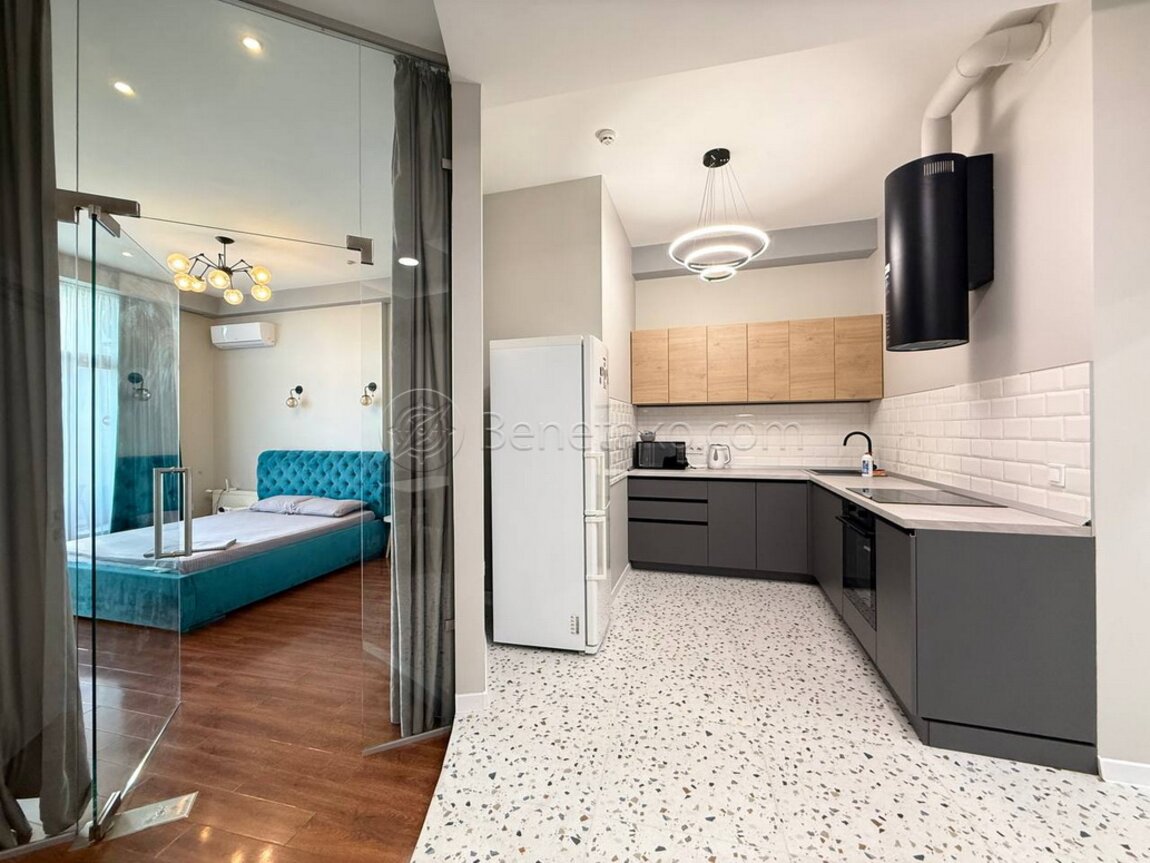 Код: 1051. ПОМЕСЯЧНО АРЕНДА АКТУАЛЬНА В ПЕРИОД С 01.09 ДО 30.05 (в летний сезон сдается посуточно, от 2-х суток, раннее бронирование от 5-и суток). Апартаменты с террасой и видом на город, Ж/К «Аркадийский дворец», ул. Аркадийское плато, 5/3, 8/12 эт. дома, общая площадь 80 кв. м. Евроремонт 2020 года, кухня-столовая и две спальни (одна спальня совместна с зоной кухни, в спальнях двуспальные кровати, во второй спальне есть шкаф-купе), встроенная кухня, холодильник, стильная машинка, в санузле гидробокс и биде. С обеих спален есть выход на террасу с летней мебелью. Закрытая, охраняемая территория, бесплатная парковка во дворе (при наличии мест), подземный паркинг (за дополнительную оплату), дом находится прямо над пляжем «Аркадия» в 150-ти метрах от моря. Самый популярный курортный район и центр развлечений Одессы с множеством кафе, ресторанов, ночных клубов и аттракционов. Аренда от 6-ти месяцев и более. Стоимость может варьироваться в зависимости от срока аренды. Перед просмотром уточните наличие и детали по VIBER, WHATSAPP или TELEGRAM, указав «КОД» из объявления. КОМИССИЯ ЗА УСЛУГИ РИЭЛТОРА - 50% от месячной аренды (разовая оплата при оформлении договора).