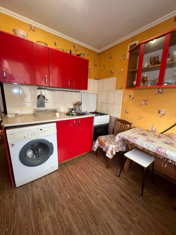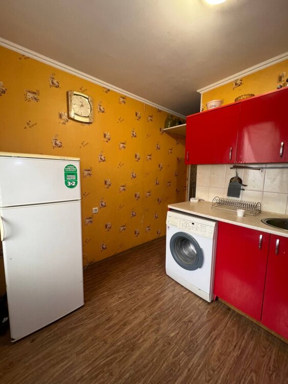Есть необходимая мебель, холодильник, стиральная машина, газовая плита с духовым шкафом.