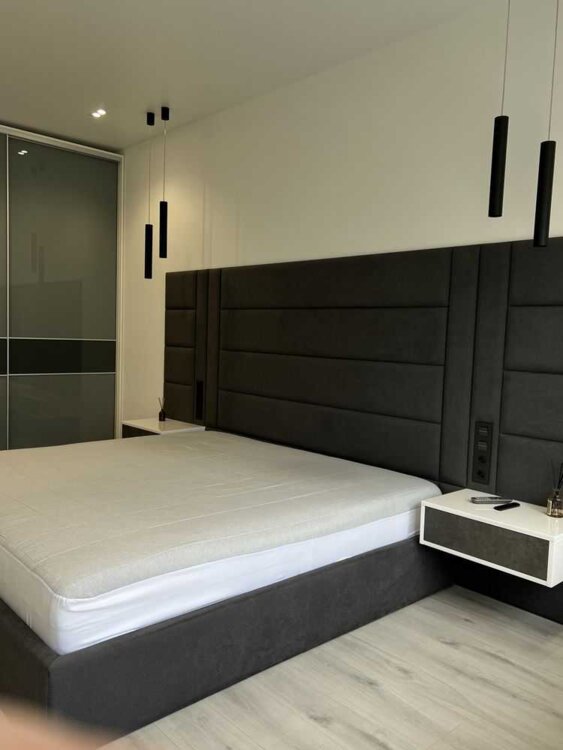 Затишна спальня з ортопедичним ліжком, Smart-TV 55, великими шафами-купе та підвіконням-зоною для відпочинку