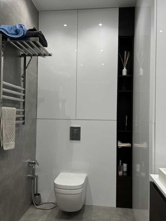 Сумісний санвузол зі скляною душовою, великим дзеркалом, бойлером на 100 л