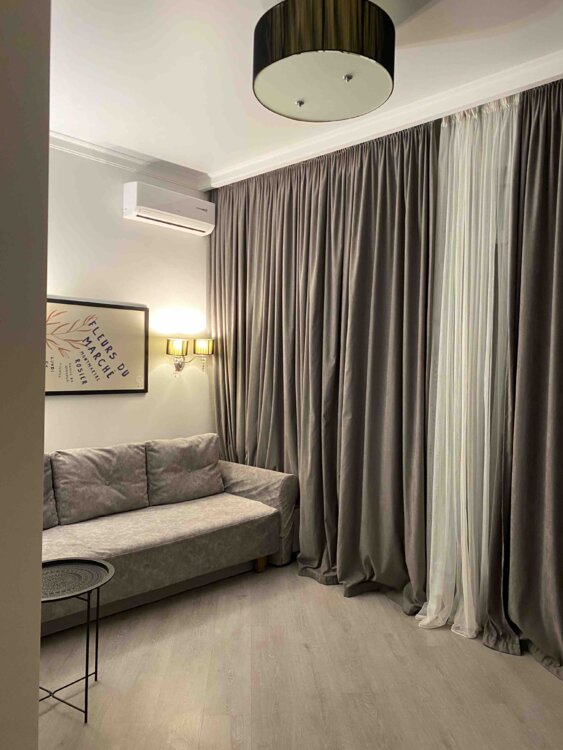 Квартира полностью укомплектована мебелью и техникой: кондиционер, микроволновка, стиральная машина, телевизор, Wi-Fi.