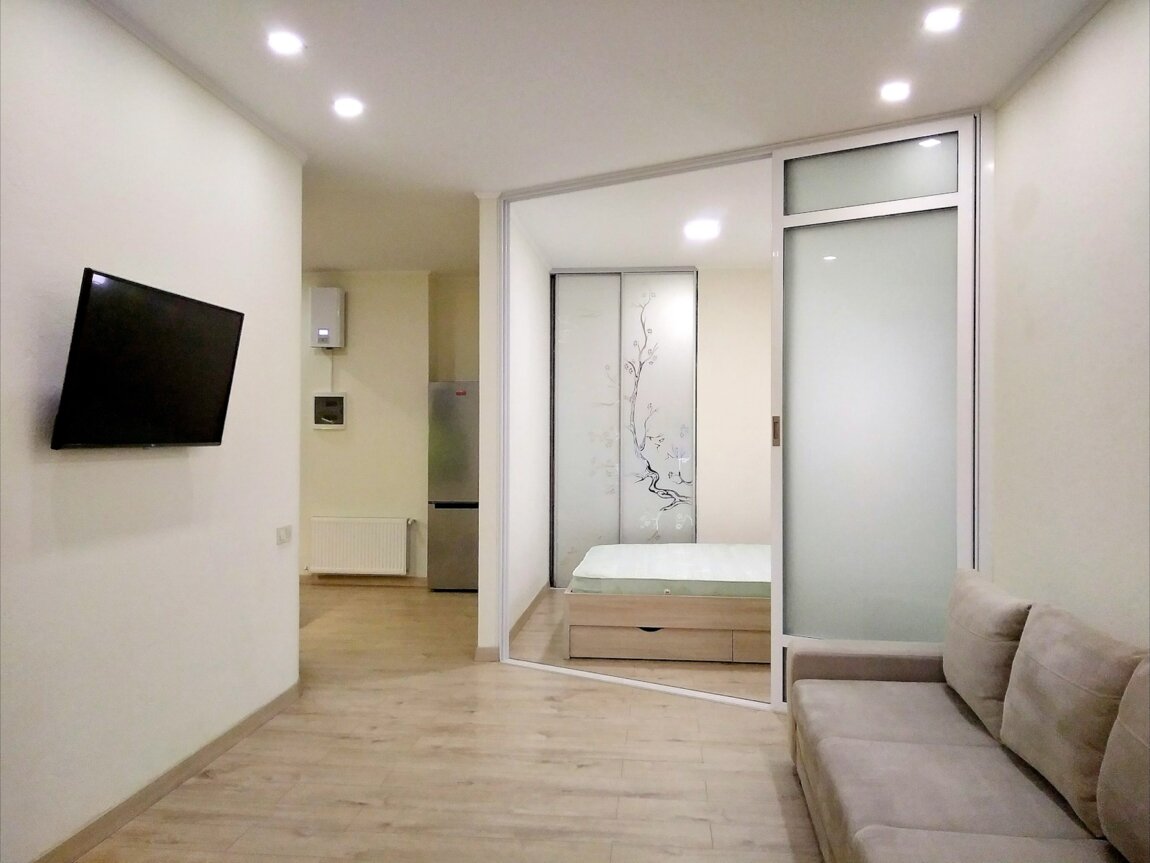 Сдам студийную квартиру 45м² в ЖК ФОНТАН на Львовской / Макаренко. 4/22 эт., окно выходит во двор (на запад), безопасная. В доме установлен генератор, который обеспечивает подачу воды, отопление от крышной котельной и работу лифтов во время отключения электроэнергии. Закрытая, охраняемая территория. Консьерж в парадной. Паркинг-укрытие. Супермаркет САНТИМ в доме на 1-м этаже. Маршрутка №185 проходит рядом.