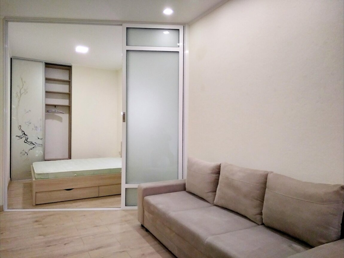 В квартире освежили ремонт в октябре 2025 года. Сделаны генеральная уборка и химчистка. Всё идеально. Двухспальная кровать 180х200, раскладной диван. Бытовая техника (стиральная машина – новая), стабилизатор напряжения, мебель (дополнительно хозяева довезут мобильную систему хранения), встроенная кухня, т/душ. кабина.