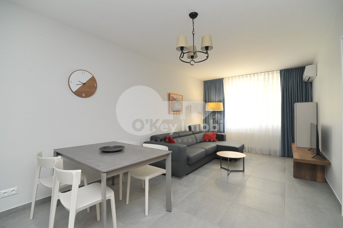 Se oferă spre chirie apartament amplasat în bloc nou din centrul orașului, str. Petru Movilă. Imobilul se extinde pe o suprafață de 92 mp și este poziționat la etajul 6 din 7. Compartimentat în: 2 camere, living, bucătărie, bloc sanitar, balcon de tip închis. Facilități: – Reparație euro; – Mobilat și dotat cu tehnică (aparat de aer condiționat); – Încălzire autonomă; – Geamuri termopane; – Comunicații conectate. Infrastructura dezvoltată, în apropiere sunt numeroase puncte sociale și comerciale. Acces facil la transportul public în orice direcție a orașului.