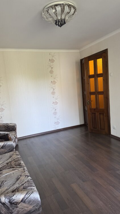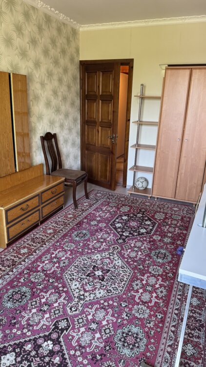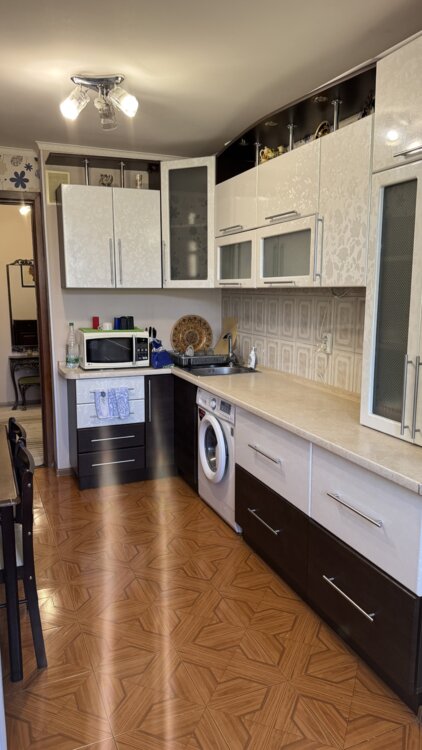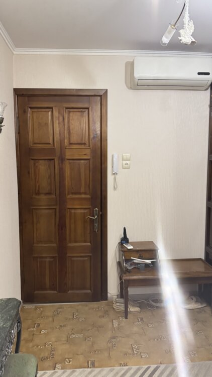 В хорошем жилом состоянии. Есть оборудованная кухня мебелью, стиральной машиной, холодильник, плита. Лоджия застекленная с встроенным большим шкафом. Двери межкомнатные деревянные, встроенные шкафы в коридоре деревянные. Стеклопакеты на окнах и дверь на лоджию. Кондиционер. Огромный капитальный гараж 37 кв. м с большим подвалом во дворе. Еще добавили 2-х спальную кровать в комнату.