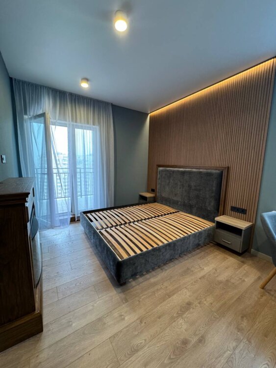 Ця нова квартира 65 м² на 11 поверсі створена для тих, хто цінує комфорт, стиль і затишок. Продумане планування: дві окремі спальні, велика кухня-студія, гардеробна та простора тераса.