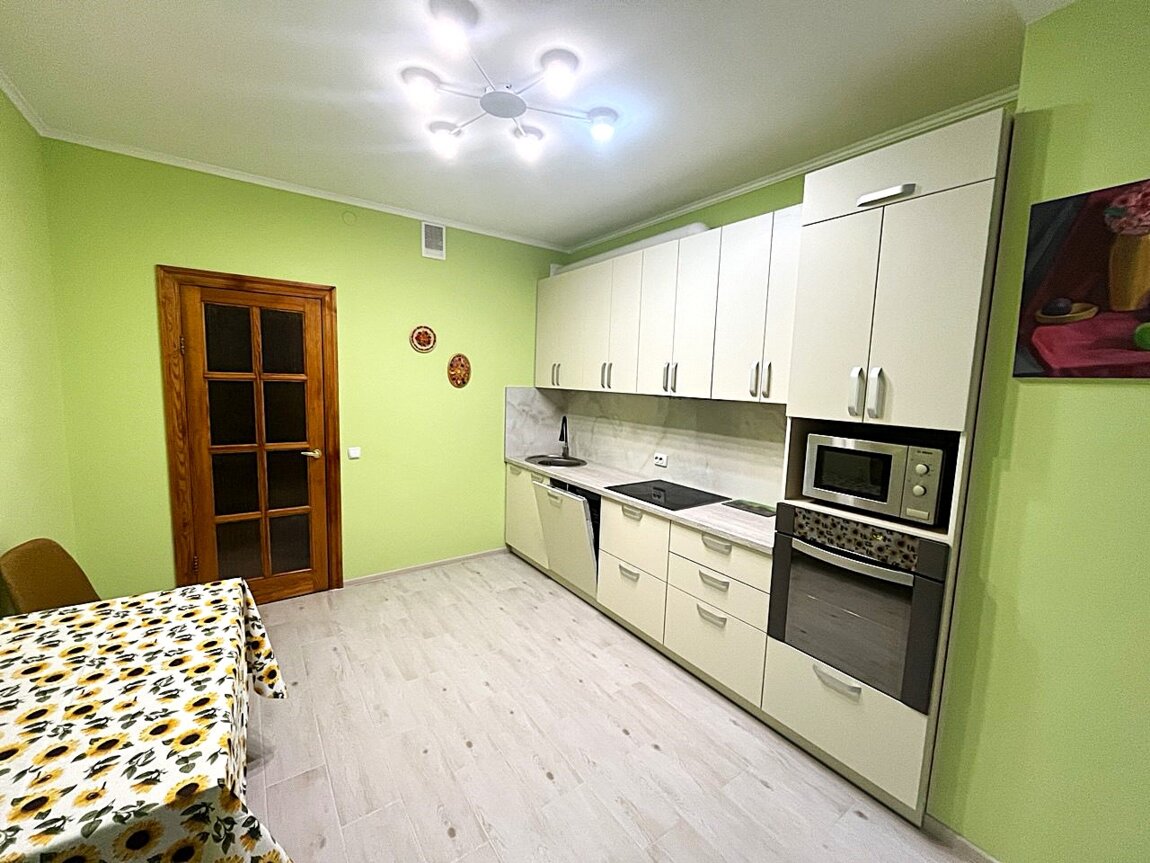 Київ. Святошинський р-н. Вул. Верховинна, 35, 5/25 пов., цегляного, каркасно-монолітного буд. 2006 р. 44/18/15. Сан. вузол суміжний (ванна), гардеробна. Нова вбудована кухня, посудомийна машина, побутова техніка. Все замінене: вікна, підлога, сан. техніка, розетки і т. п. Сучасний дизайн, просторо, не перенавантажено. Усе функціонує, тепло та затишно. Орієнтована квартира у двір. Лічильники на все знаходяться в коридорі. Будинок охороняється, два ліфти. Є підземний паркінг, він же слугує як і бомбосховище. Район знаходження будинку дозволяє безперешкодно використовувати будь-які потреби, щодо відпочинку, навчання та іншого. Територія будинку огороджена, централізовано подаються усі комунікації, вивіз сміття. Оренда 18500 грн/м-ць + забезпечувальна сума (страхова), яка Вам повернеться при звільненні квартири, + комунальні. Здаємо на довгий час, без тварин. З дітками - будь ласка! Квартира вільна. Чекаємо Вас. Перегляди за узгодженням. Телефонуйте!