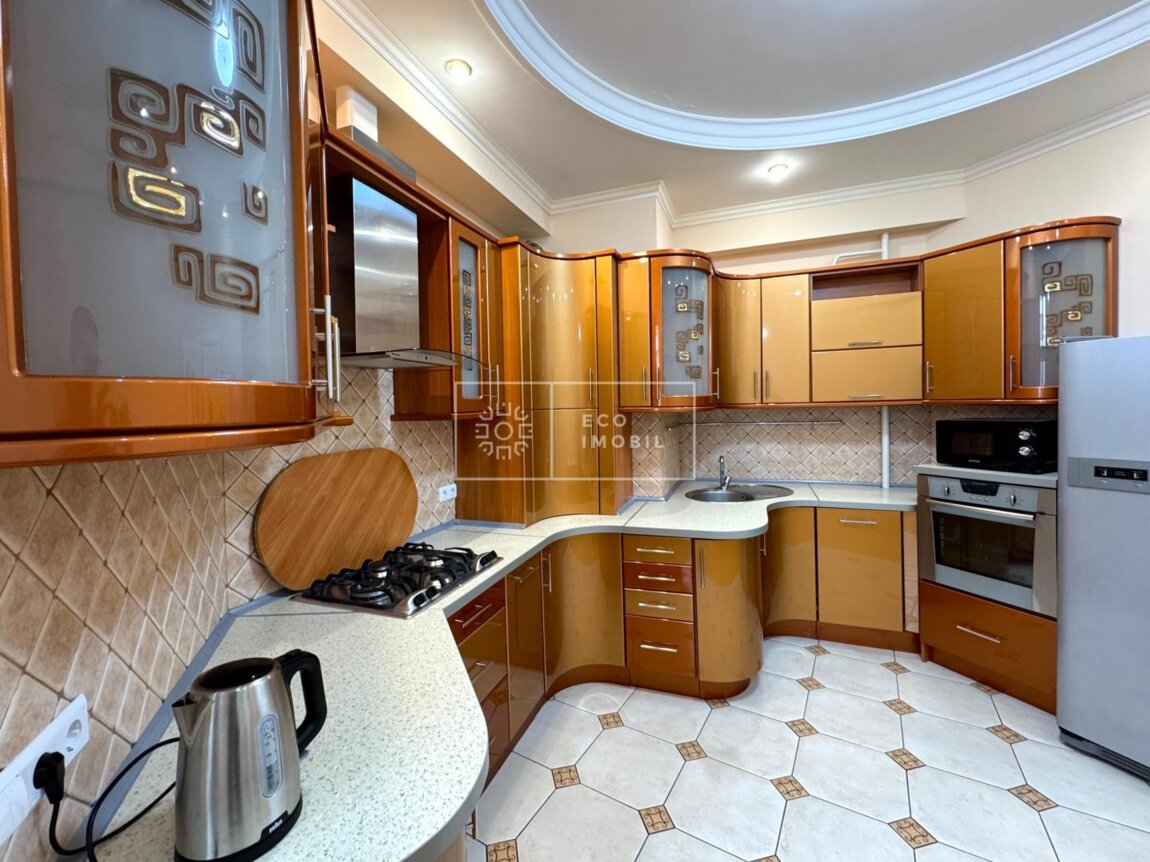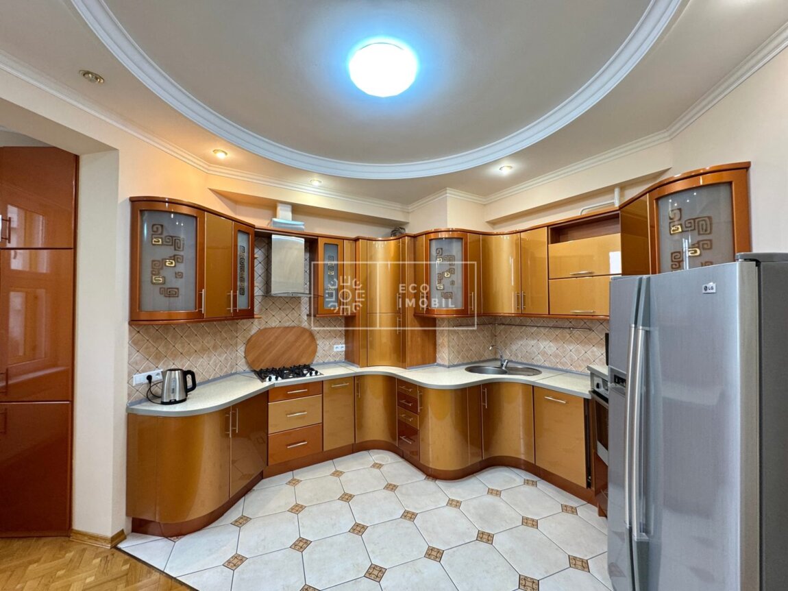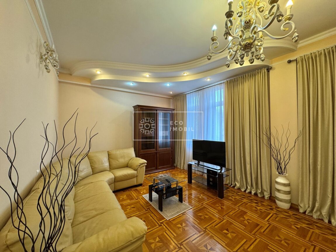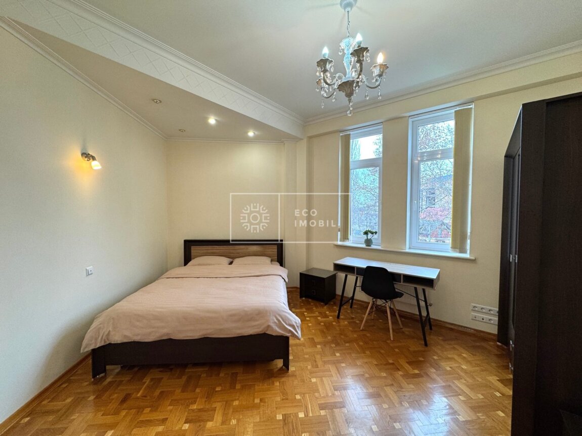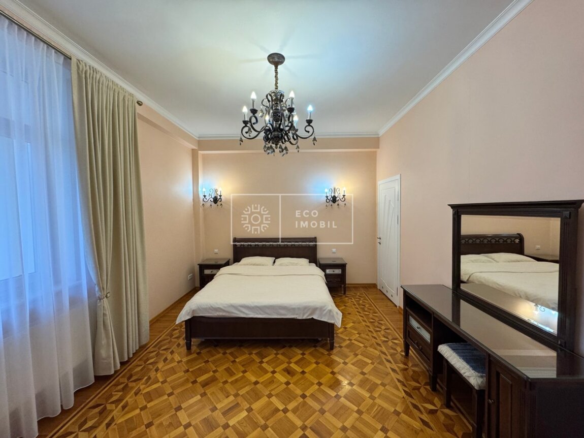 Vă propunem spre închiriere un apartament cu 2 camere și living generos, bloc nou, situat în sectorul Centru, strada 31 August 1989. Imobilul, cu o suprafață de 116 m.p., este poziționat la etajul 3 din 9. Caracteristici: design individual, reparație calitativă, obiecte sanitare instalate, mobilat și utilat cu tehnică de uz casnic, încălzire autonomă, geamuri termopan. Compartimentare: 2 dormitoare, living, bucătărie, 2 grupuri sanitare, balcon închis. Blocul locativ dispune de pază și supraveghere video 24/24, teren de joacă, zonă de agrement, parcare, bazin în curte. În imediata apropiere se găsesc numeroase puncte sociale și comerciale: supermarket, farmacie, bancă, grădiniță, școli, sală de fitness, parc etc. Acces facil la transportul public în orice direcție a orașului. Предлагаем в аренду квартиру с 2 спальнями и просторной гостиной в новострое, расположенную в секторе Центр, на улице 31 Августа 1989. Общая площадь — 116 м². Квартира находится на 3 этаже из 9. Характеристики: индивидуальный дизайн, качественный ремонт, установлена сантехника, полностью меблирована и оснащена бытовой техникой, автономное отопление, стеклопакеты. Планировка: 2 спальни, гостиная, кухня, 2 санузла, закрытый балкон. Жилой дом оснащён охраной и видеонаблюдением 24/24, есть детская площадка, зона отдыха, парковка и бассейн во дворе. В непосредственной близости расположены многочисленные социальные и коммерческие объекты: супермаркет, аптека, банк, детский сад, школы, фитнес-зал, парк и т.д. .