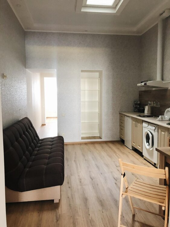 Здам 1кв. на вул. В. Арнаутська/Європейська, 2/2, 45/20/11 вбудована кухня, прохідн, двокамерний холодильник, кондиціонер, пральна машина, сенсорна плита, мікрохвильова піч, диван на кухні. Опалення та гаряча вода - газовий котел. У спальні двоспальне ліжко, комод, шафа, вихід на балкон. Для пари або однієї людини. Фото відповідають дійсності. Добра інфраструктура. Рідко вимикають світло.