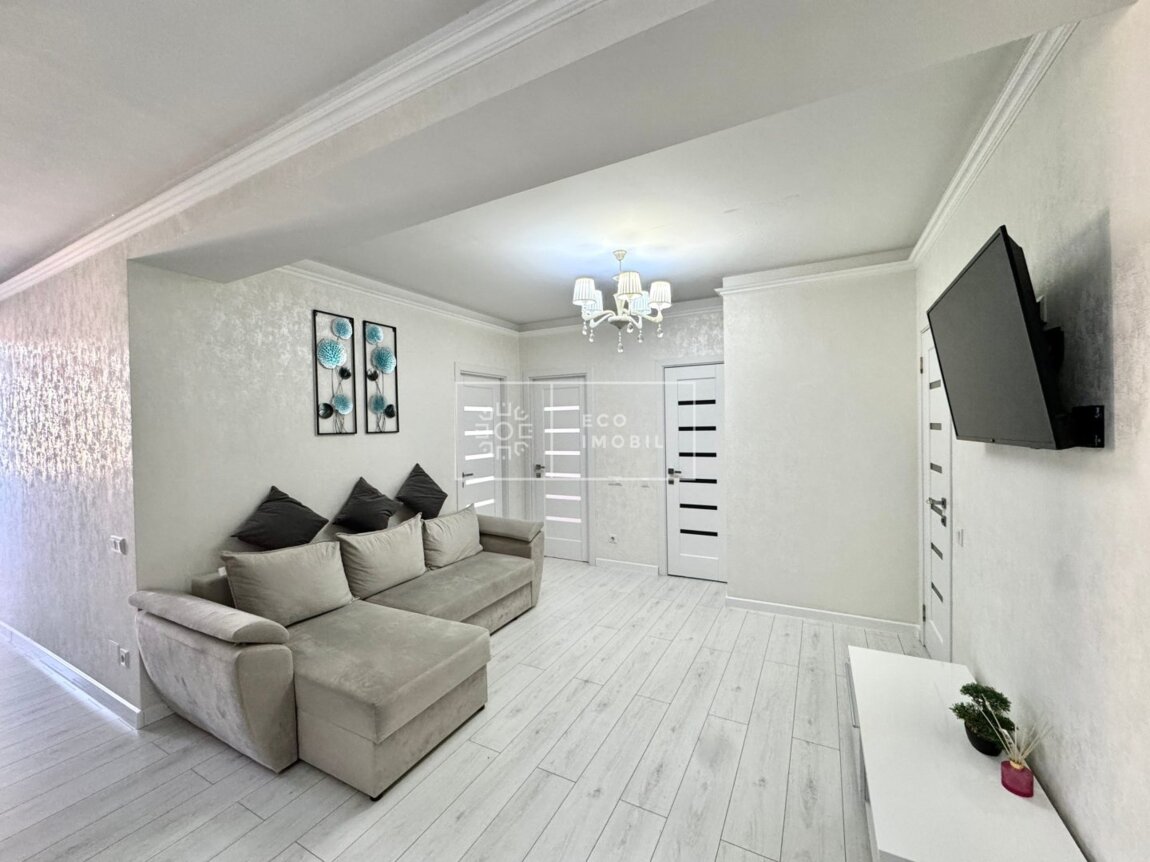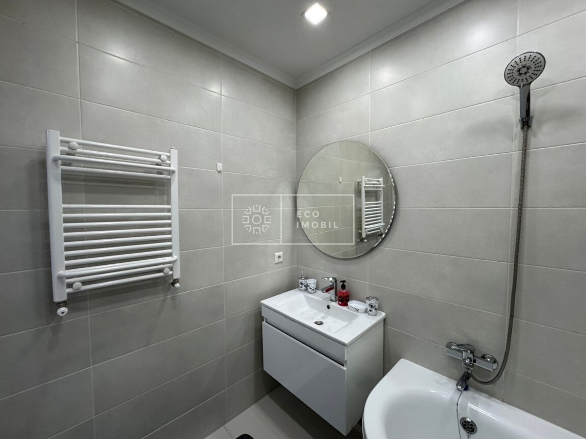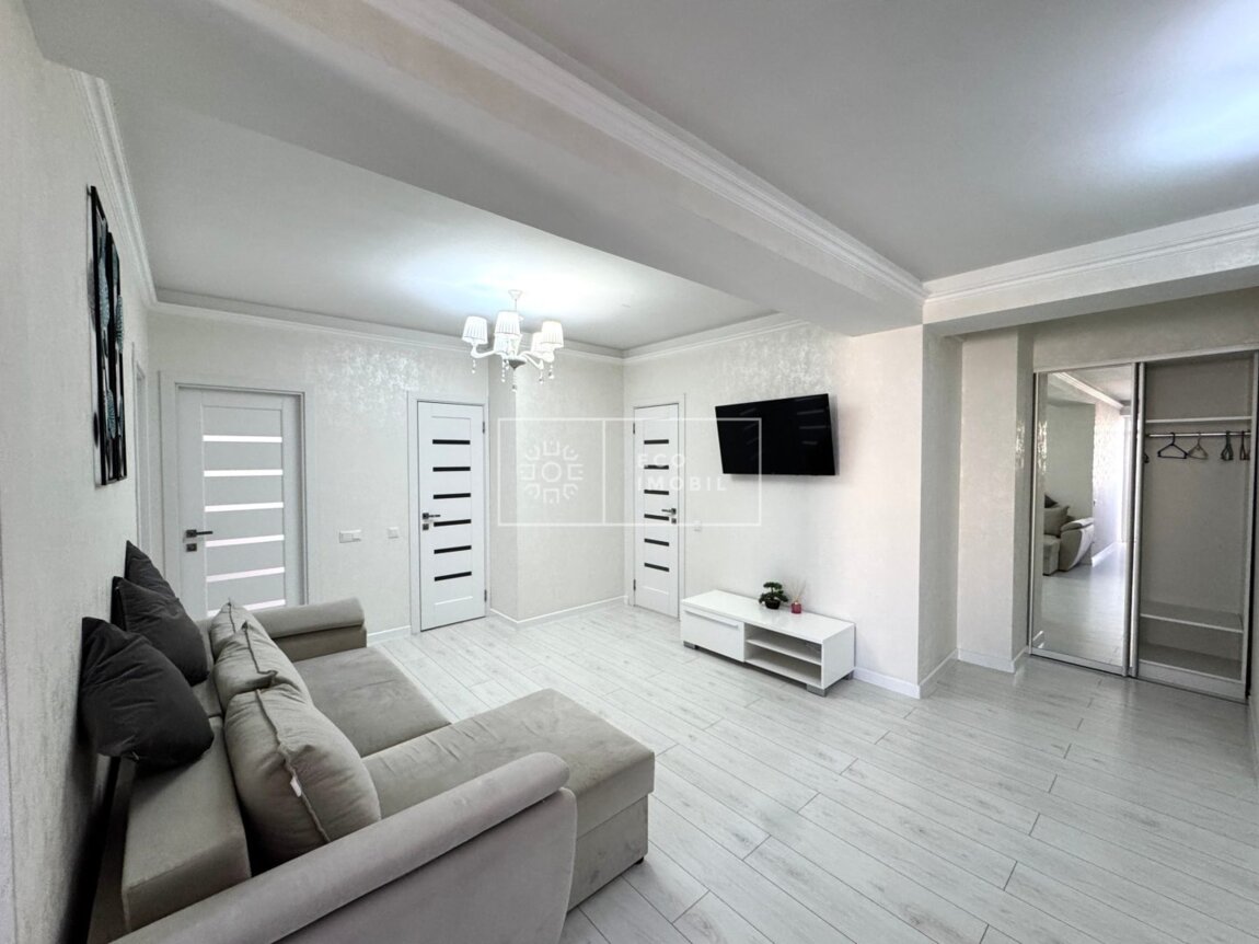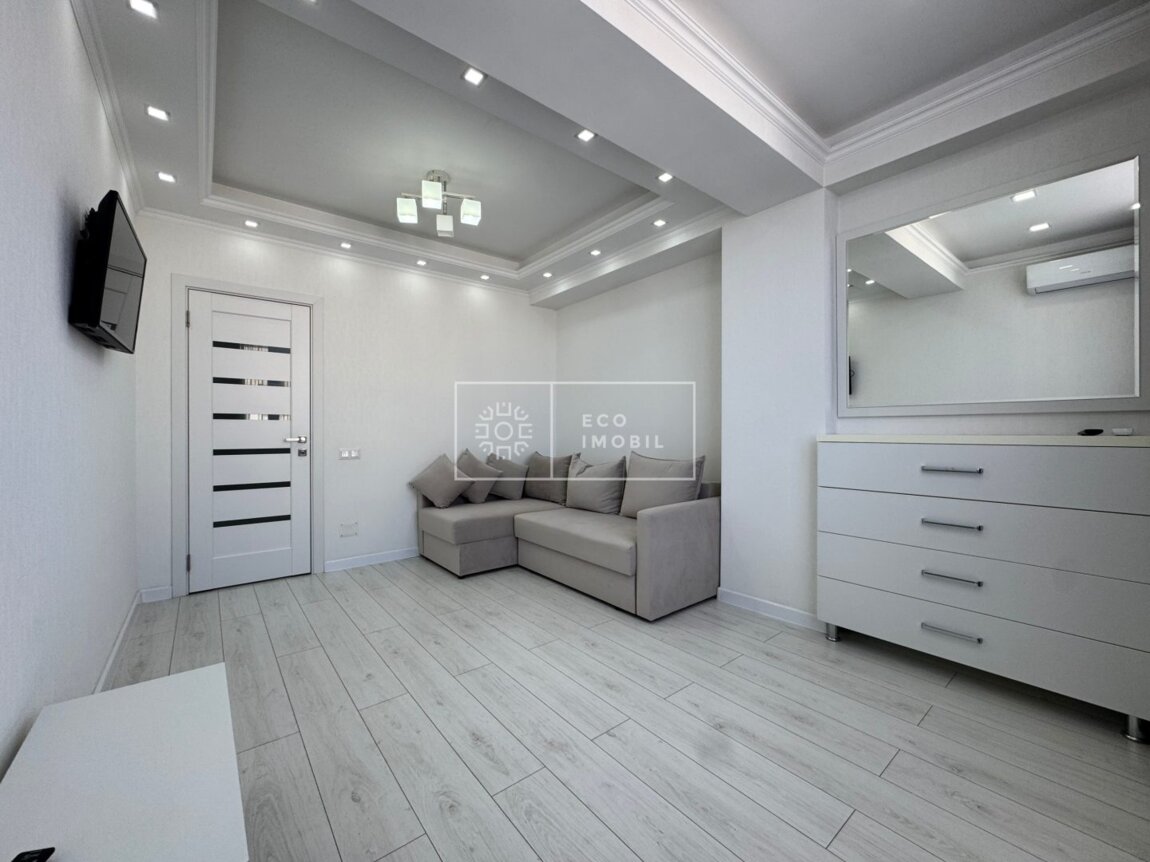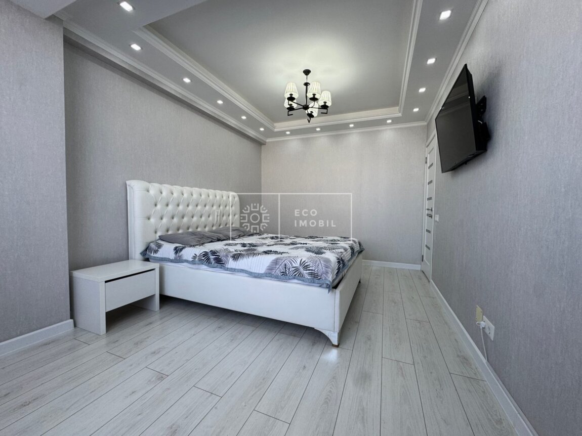 Vă propunem spre chirie apartament cu 2 odăi și living, bloc nou, amplasat în sect. Centru, str. Romană. Imobilul, cu o suprafață de 77 m.p., este poziționat la etajul 15 din 15. Caracteristici: design individual, dispune de reparație calitativă, obiecte sanitare instalate, dotat cu mobilă și tehnică de uz casnic, încălzire autonomă. Compartimentare: 2 dormitoare, living, bucătărie, bloc sanitar, balcon de tip închis, garderobă. Blocul locativ dispune de pază și supraveghere video 24/24, teren de joacă, zonă de agrement. În imediată apropiere se găsesc numeroase puncte sociale și comerciale, supermarket, farmacie, bancă, grădiniță, sală de fitness, parc etc. Acces facil la transport public în orice direcție a orașului. Предлагаем в аренду квартиру с 2 спальнями и гостиной в новом доме, расположенную в секторе Центр, ул. Романэ. Квартира площадью 77 м² расположена на 15 этаже из 15. Характеристики: индивидуальный дизайн, качественный ремонт, установлена сантехника, квартира оснащена мебелью и бытовой техникой, автономное отопление. Планировка: 2 спальни, гостиная, кухня, санузел, балкон закрытого типа, гардеробная. Жилой комплекс оснащён охраной и видеонаблюдением 24/24, есть детская площадка и зона отдыха. В непосредственной близости расположены многочисленные социальные и коммерческие объекты: супермаркет, аптека, банк, детский сад, фитнес-зал, парк и др. Удобный доступ к общественному транспорту в любом направлении города.