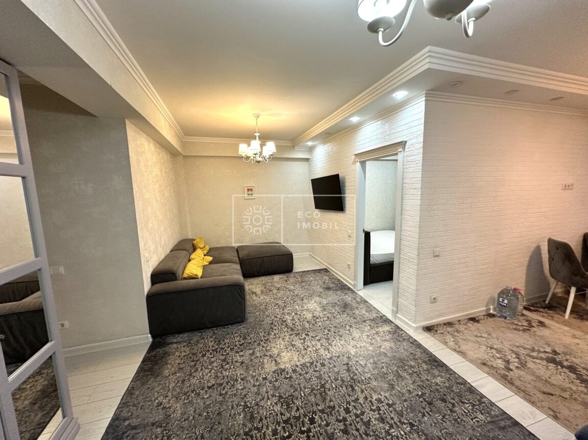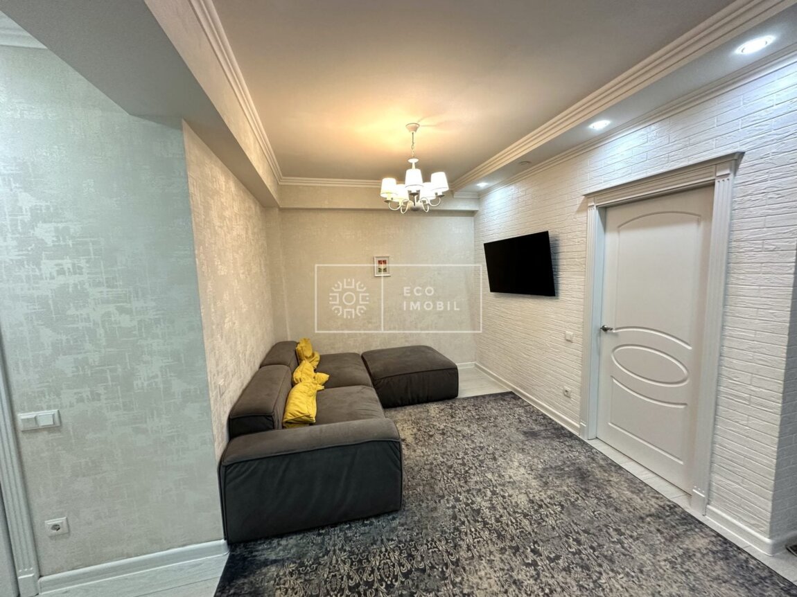 Vă propunem spre chirie apartament cu 2 odăi și living, bloc nou, amplasat în sect. Centru, str. Melestiu. Imobilul, cu o suprafață de 68 m.p., este poziționat la etajul 8 din 16. Caracteristici: design individual, dispune de reparație calitativă si nouă, obiecte sanitare instalate, dotat cu mobilă și tehnică de uz casnic, încălzire autonomă, condiționer, maşina de uscat, geamuri termopane, curte de tip închis cu teren pentru copii. Compartimentare: 2 dormitoare, living, bucătărie, bloc sanitar, balcon. Blocul locativ se afla in inima parcului Valea trandafirilor, dispune de pază și supraveghere video 24/24, teren de joacă, zonă de agrement. În imediată apropiere se găsesc numeroase puncte sociale și comerciale, farmacie, bancă, grădiniță, sală de fitness, parc etc. Acces facil la transport public în orice direcție a orașului. Предлагается в аренду квартира с 2 спальнями и гостиной в новострое, расположенная в секторе Центр, ул. Мелестиу. Общая площадь составляет 68 кв.м, квартира находится на 8 этаже из 16. Характеристики: индивидуальный дизайн, выполнен качественный и новый ремонт, установлена сантехника, квартира полностью меблирована и оснащена бытовой техникой, автономное отопление, кондиционер, сушильная машина, стеклопакеты, закрытый двор с детской площадкой. Планировка: 2 спальни, гостиная, кухня, санузел, балкон. Жилой дом расположен в самом сердце парка «Валя Трандафирилор», оснащён охраной и круглосуточным видеонаблюдением, есть детская площадка и зона отдыха. В ..
