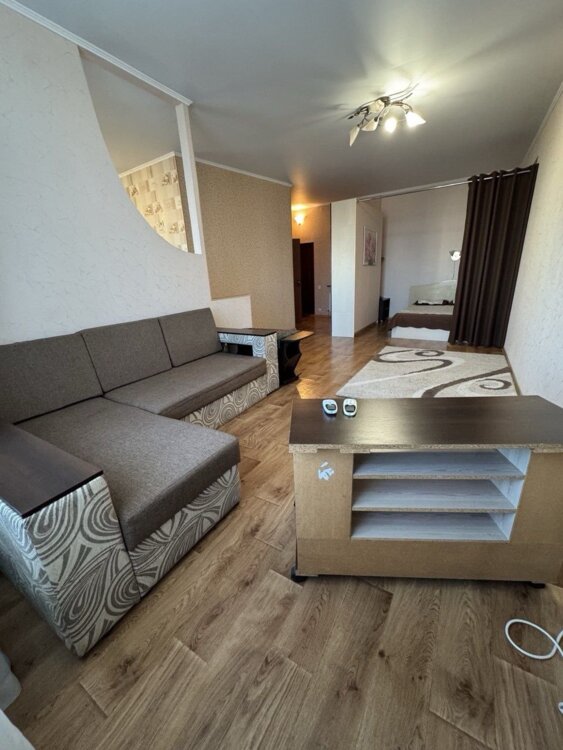 Сдается 1 комнатная квартира ЖК Каскад, Королева\Левитана, 8этаж\12 Площадь 46 кв. м. Балкон застеклен. Квартира укомплектована мебелью и техникой. 2-спальнаяя кровать и диван, вместительный шкаф, кондиционер. Закрытая территория. Удобная транспортная развязка.