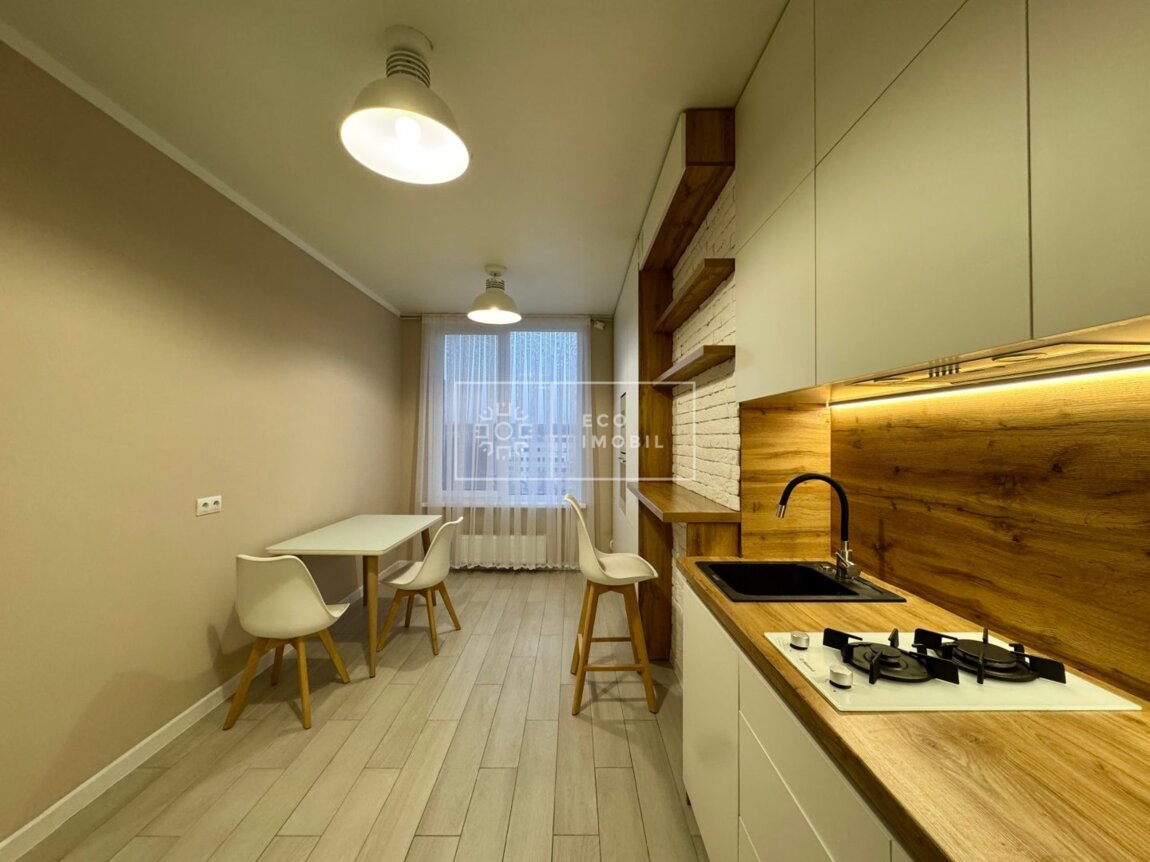 Vă propunem spre chirie apartament cu o odaie, bloc nou, amplasat în sect. Centru, str. Avram Iancu. Imobilul, cu o suprafață de 50 m.p., este poziționat la etajul 3 din 8. Caracteristici: design individual, dispune de euro reparație, obiecte sanitare instalate, dotat cu mobilă și tehnică de uz casnic, încălzire autonomă. Compartimentare: un dormitor, bucătărie, bloc sanitar. Blocul locativ dispune de pază și supraveghere video 24/24, teren de joacă, zonă de agrement. În imediată apropiere se găsesc numeroase puncte sociale și comerciale, supermarket, farmacie, bancă, grădiniță, sală de fitness, parc etc. Acces facil la transport public în orice direcție a orașului. Предлагаем в аренду квартиру с одной комнатой в новострое, расположенную в секторе Центр, ул. Аврам Янку. Квартира площадью 50 кв.м находится на 3 этаже из 8. Характеристики: индивидуальный дизайн, евроремонт, установлена сантехника, укомплектована мебелью и бытовой техникой, автономное отопление. Планировка: одна спальня, кухня, санузел. Жилой комплекс оснащён охраной и видеонаблюдением 24/24, детской площадкой и зоной отдыха. В непосредственной близости расположены многочисленные социальные и коммерческие объекты: супермаркет, аптека, банк, детский сад, фитнес-зал, парк и т.д. Удобный доступ к общественному транспорту в любом направлении города.