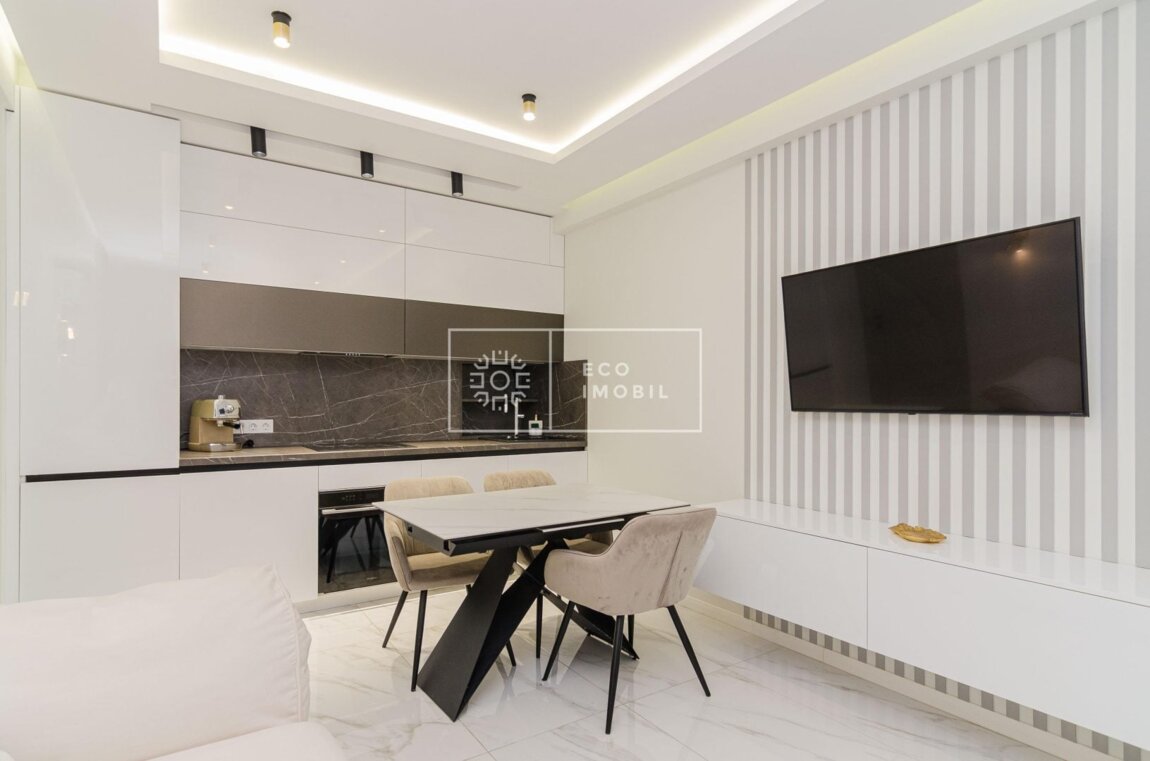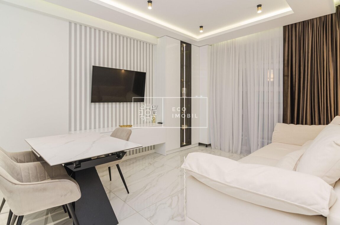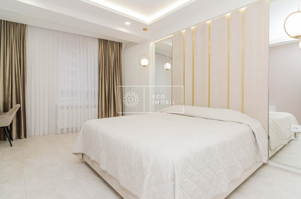 Vă propunem spre chirie apartament cu o odaie și living, bloc nou, amplasat în sect. Râșcani, str. Bogdan Voievod. Imobilul, cu o suprafață de 55 m.p., este poziționat la etajul 10 din 17. Caracteristici: design individual, dispune de euroreparație, obiecte sanitare instalate, dotat cu mobilă și tehnică de uz casnic, încălzire autonomă. Compartimentare: un dormitor, living, bucătărie, bloc sanitar, balcon. Blocul locativ dispune de pază și supraveghere video 24/24, zonă de agrement. În imediată apropiere se găsesc numeroase puncte sociale și comerciale, supermarket, farmacie, bancă, grădiniță, sală de fitness, parc etc. Acces facil la transport public în orice direcție a orașului. Предлагаем в аренду квартиру с одной комнатой и гостиной в новом доме, расположенном в секторе Рышкановка, на улице Богдан Воевод. Квартира общей площадью 55 кв.м находится на 10 этаже из 17. Характеристики: индивидуальный дизайн, выполнен евроремонт, установлена сантехника, полностью меблирована и оснащена бытовой техникой, автономное отопление. Планировка: одна спальня, гостиная, кухня, санузел, балкон. Жилой комплекс оснащён охраной и видеонаблюдением 24/24, зоной отдыха. В непосредственной близости находятся многочисленные социальные и коммерческие объекты: супермаркет, аптека, банк, детский сад, фитнес-зал, парк и др. Удобный доступ к общественному транспорту в любом направлении города.