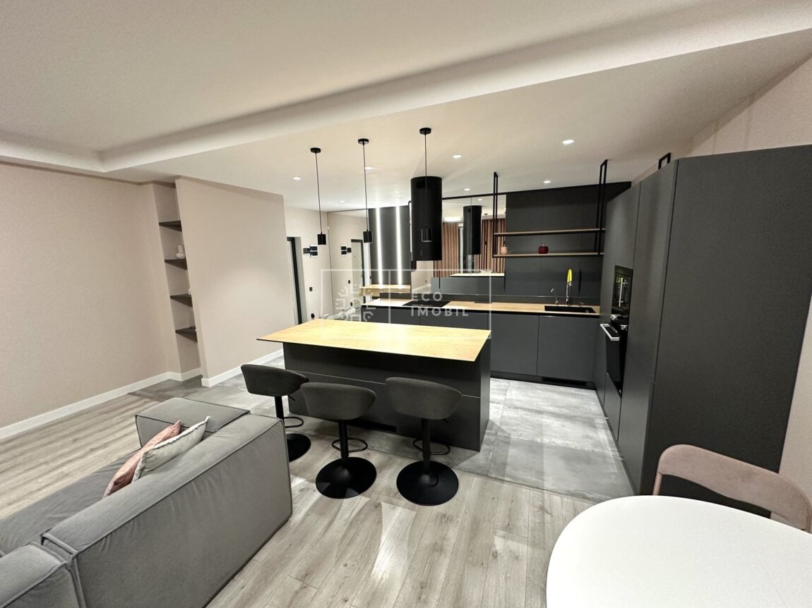 Vă propunem spre chirie apartament cu o odaie și living, bloc nou, amplasat în sect. Centru, str. Constantin Stere. Imobilul, cu o suprafață de 84 m.p., este poziționat la etajul 3 din 10. Caracteristici: design individual, tavane înalte, dispune de reparație calitativă si nouă, obiecte sanitare instalate, dotat cu mobilă și tehnică de uz casnic, încălzire autonomă, geamuri panoramice, pardosea caldă, condiționer, mașina de uscat rufe, masina de spalat veselă, curte de tip închis. Compartimentare: 1 dormitor, living spațios cu bucătarie, antreu, bloc sanitar, garderobă și balcon cu priveliste. Blocul locativ dispune de pază și supraveghere video 24/24, teren de joacă, zonă de agrement. În imediată apropiere se găsesc numeroase puncte sociale și comerciale, supermarket, farmacie, bancă, grădiniță, sală de fitness, parc etc. Acces facil la transport public în orice direcție a orașului. Предлагается в аренду квартира с одной комнатой и гостиной в новом доме, расположенная в секторе Центр, на ул. Константин Стере. Квартира площадью 84 кв.м находится на 3 этаже из 10. Характеристики: индивидуальный дизайн, высокие потолки, качественный новый ремонт, установлена сантехника, полностью меблирована и оснащена бытовой техникой, автономное отопление, панорамные окна, тёплый пол, кондиционер, сушильная машина, посудомоечная машина, закрытый двор. Планировка: 1 спальня, просторная гостиная с кухней, прихожая, санузел, гардеробная и балкон с видом. Жилой комплекс оснащён охраной и ...