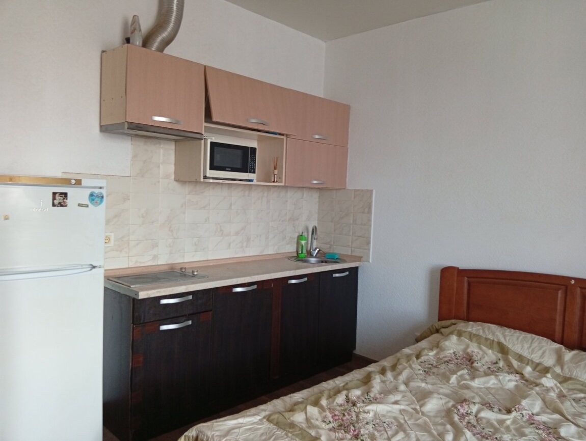 11/16 общ. 29 м. кв студия. Квартира укомплектована мебелью и бытовой техникой.