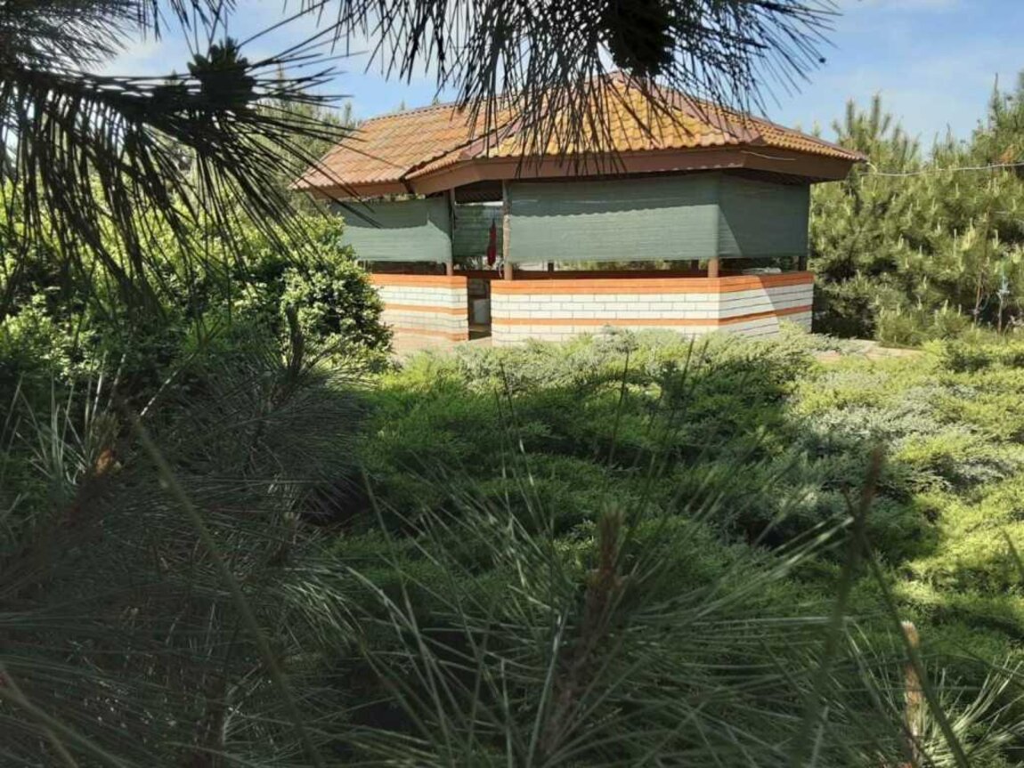 комплекс сдается на территории в 50 соток. На огороженной территории сосновый мини лес с крымской сосны,можевельники, облагороженная территория обработанная от клещей, розарий ,лаванда и большое количество разнообразных растений. Рaзмещение на территории закрытой 5 и более машин,беседка,бассейн(11х4 м,глубина 1,7 м) ,детские стульчики 2 шт для кормления,игрушки.