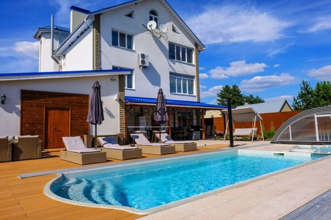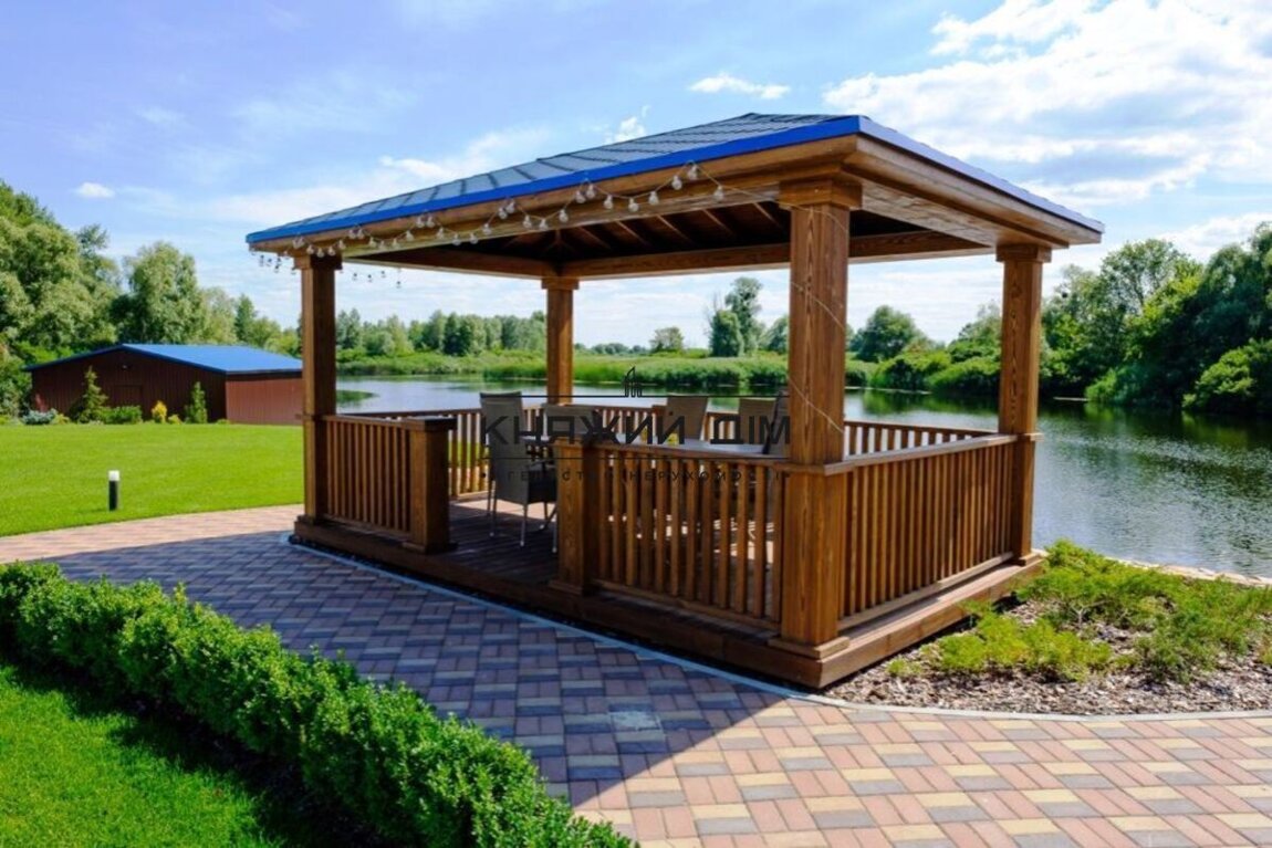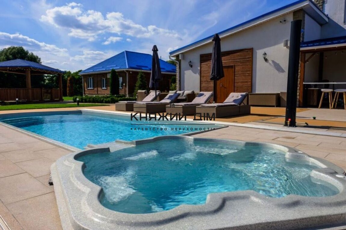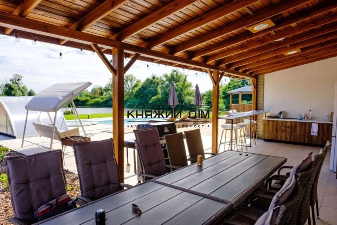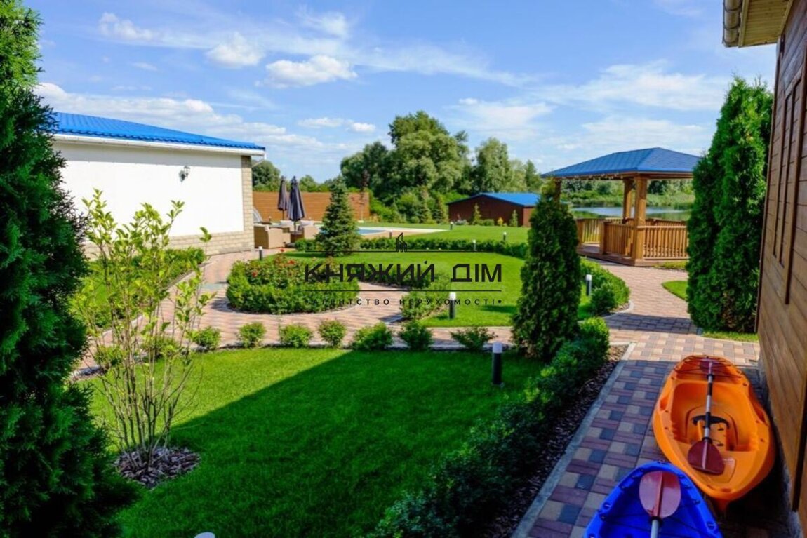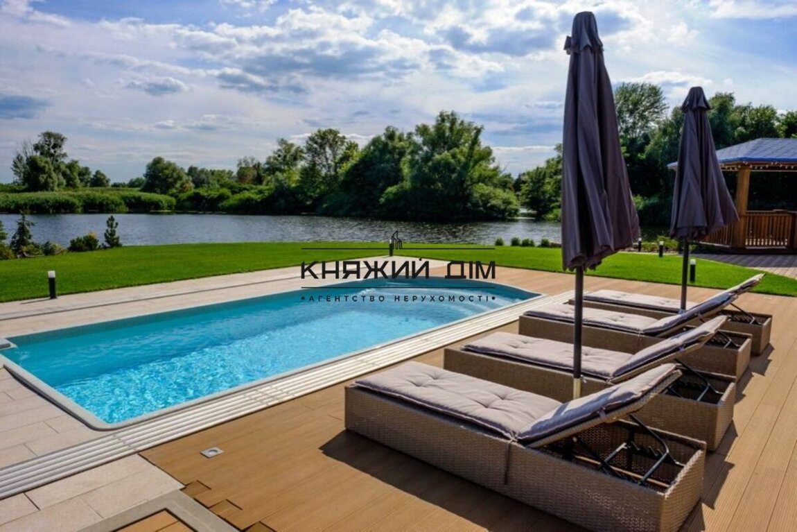 Сдается в аренду дом в живописном месте с выходом на залив реки Днепр в закрытом кооперативе в Осокорках (район первого шлюза, в 15 минутах езды от метро Славутич).Комплекс состоит из основного дома, отдельного коттеджа и благоустроенной зеленой территории 15 соток с открытым бассейном, джакузи, 2 пляжа, набережной, беседки, открытой террасы с летней кухней и зоны барбекю.Основной дом состоит из 4-х этажей, на которых расположены:- 5 спален- просторная гостинная- кухня- финская сауна- комната отдыха с русским бильярдомКоттедж (гостевой домик) состоит из:- 2-х спален- русская баня- отдельная терраса с лаунж-зоной, обеденной зоной и выходом на собственный пляж- просторная гостиная с большим столом (до 10 чел)Панорамная беседка с видом на залив реки Днепр позволяет комфортно разместится до 8 человек.Терраса возле бассейна оборудована 4-мя шезлонгами, зонтами, лаунж-зоной с удобным диваном и креслами, барным столом.Безусловным преимуществом комплекса является живописный вид на природу залива реки Днепр при непосредственной близости к г. Киев.Прекрасно подойдет для семей, компаний, любителей активного отдыха. Гостям предоставляются каяки. Отличная возможность для рыбалки с оборудованного пирса. Цена 6 000 у.е. Код объекта 139222