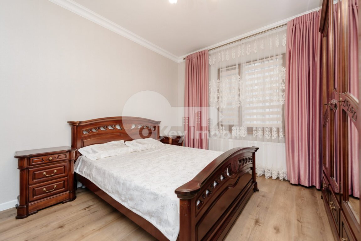 Spre chirie casă într-un nivel amplasată în sectorul Buiucani, str. Paris. Imobilul are suprafața de 90 mp. Compartimentată în: 2 dormitoare, living. bucătărie, bloc sanitar. Dispune de foișor în curte. Facilități: – Euro-reparație, – Mobilată și dotată cu tehnică de uz casnic, – Încălzire autonomă / sobă pe lemne, – Aer condiționat, – Geamuri termopan, – Loc de parcare în curte. Amplasarea este reușită. În apropiere aveți mai multe puncte de necesitate.