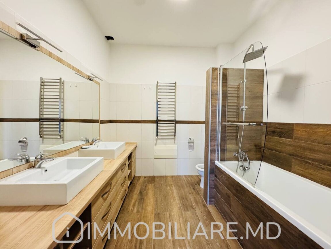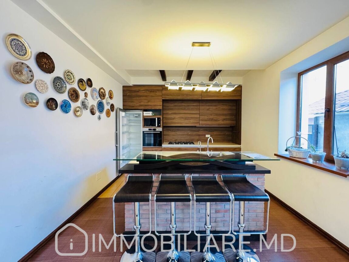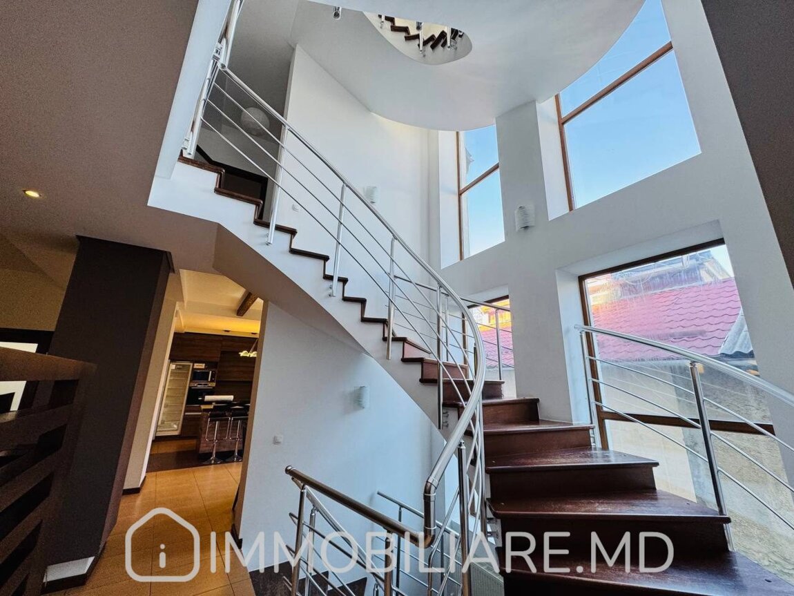 Casă cu 2 niveluri, sect. Centru Vă propunem spre chirie casă în 2 niveluri amplasată în sect. Centru, str. Mihail Kogălniceanu. Zonă rezidențială cu infrastructură bine dezvoltată. Acces facil la transportul public în orice direcție a orașului. Suprafața totală de 350 mp. Casa dispune de: – aparat de aer condiționat;, – încălzire prin pardoseală;, – geamuri termopan;, – subsol;, – șemineu; – toată mobila și tehica necesară.