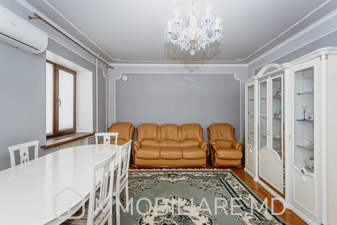 Casă cu 2 niveluri, sect. Centru Vă propunem spre chirie o casă cu 2 niveluri în centrul istoric amplasată în sect. Centru, str. Mihail Kogîlniceanu. Zonă cu infrastructură bine dezvoltată. Acces facil la transportul public în orice direcție a orașului. Suprafața totală de 110 mp. Casa dispune de: – aparat de aer condiționat;, – geamuri termopan;, – subsol; – toată mobila și tehnica necesară pentru un trai confortabil.