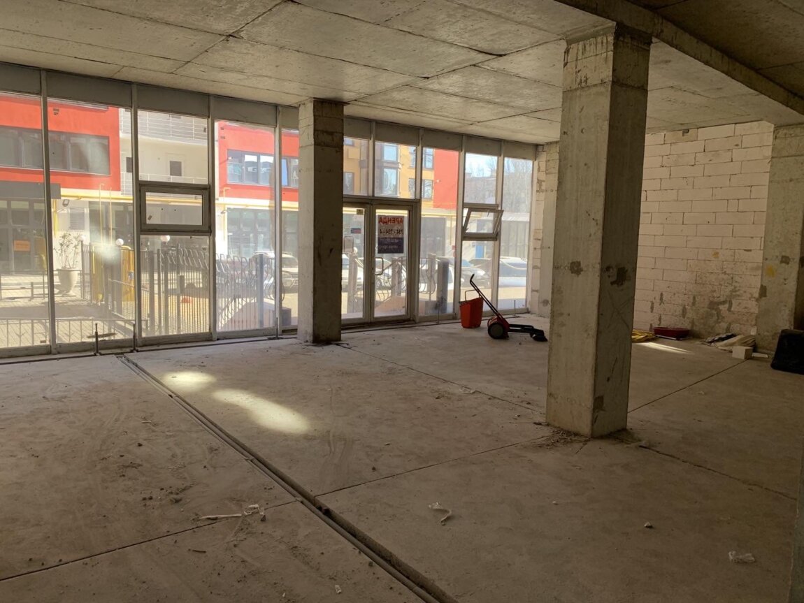 24403. Сдам фасадное помещние на ул. Маршала Малиновского. Первый этаж жилого дома, территория открытая. Фасадный вход и витринные окна. Общая площадь 101.9 кв,м. Состояние от строителей.20 кВт. Парковка.