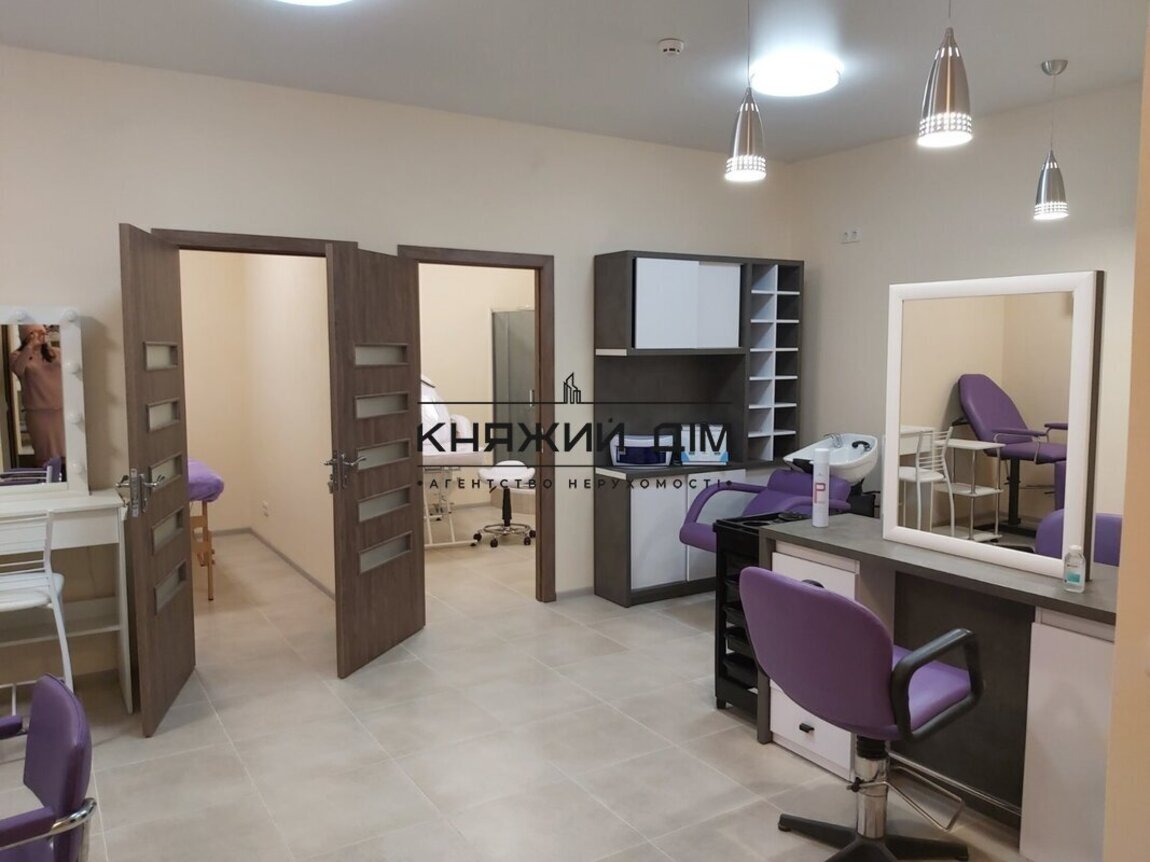 Оренда приміщення на Софіївській Борщагівці по вул.Гетьманській 17 в ЖК Львівській Маєток. Готове приміщення під Салон. Загальна площа 55м2, напівпідвальне приміщення. Окрема вхідна група. Є ресепшн та каво-машина. Центральна зала 29м2, складається з двух парехмахерських робочих місць, перше - манікюр/педикюр, друге-для візажу. М’який диван, крісло, шафа-купе, ТВ, кондиціонер, WI-FI (все професійне меблювання в наявності, душ-кабіна), с/в 4м2, є пральна машина. Накриття перед входом. Є наружна реклама з декількох позицій. Ціна оренди 25.000 грн + к.п. Код об’єкта:1581803