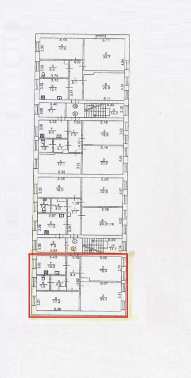 3 просторі кабінети та зала 22 кв.м., міні-кухня, сан.вузол.