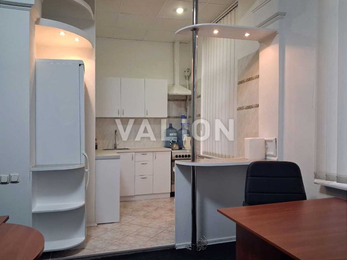 Великий зал, два окремих кабінети облаштована офісними меблями (офісні крісла та стільці, столи, шафи), санвузол, кухня.