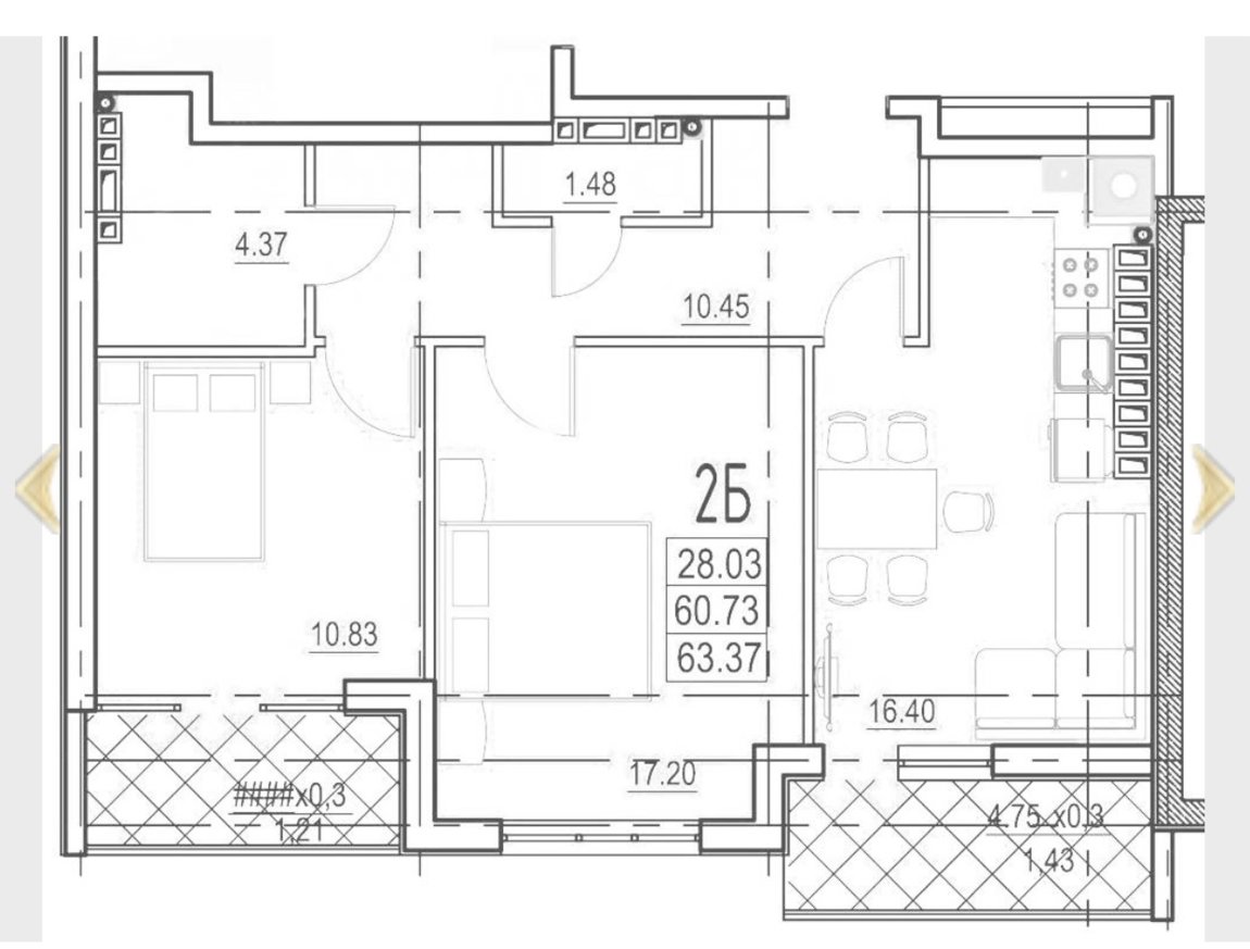 Состояние от строителей. Два балкона. Окна выходят на ухоженную придомовую территорию.