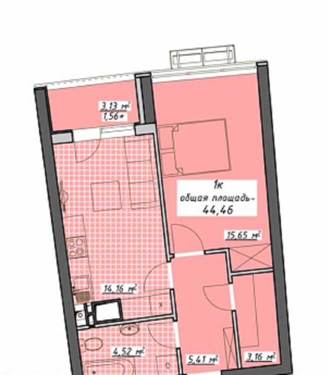 Житлова площа16 м²