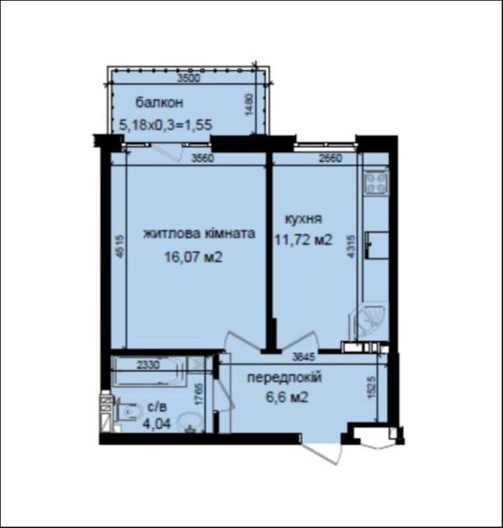 Житлова площа16 м²