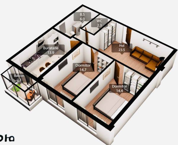 Locuința are o suprafață de 79 m2, se află la etajul 10 din 13 și este compartimentată în: 2 camere, bucătărie, balcon, grup sanitar separat si holl.