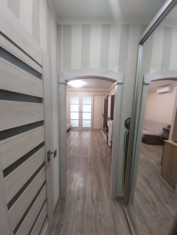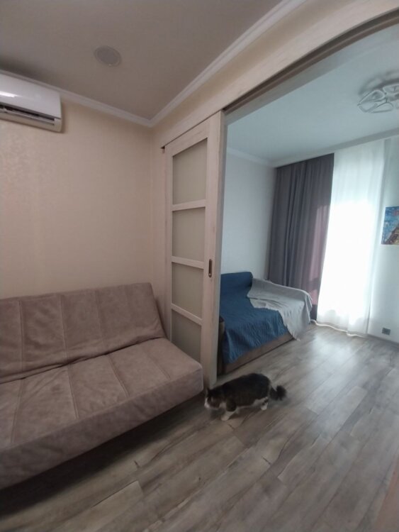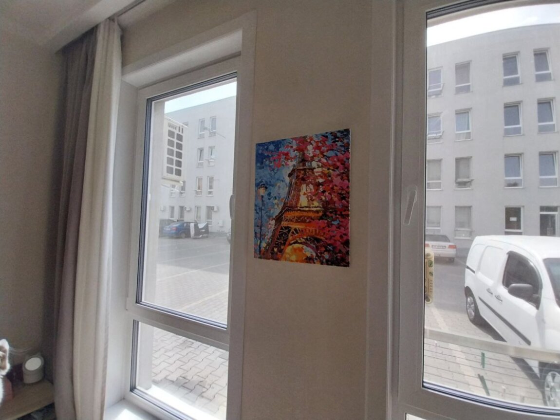 28850. Продам 1-комнатную квартиру в новом жилом комплексе. Общая площадь 35 кв.м. Просторная комната с панорамными окнами. Уютная зона кухни. Выполнен современный ремонт с использованием качественных материалов. В санузле теплый пол. Квартира меблирована для комфортного проживания. Территория комплекса закрытая, оборудована детскими и спортивными площадками. Рядом магазины, супермаркеты, салоны красоты. Хорошая транспортная развязка.