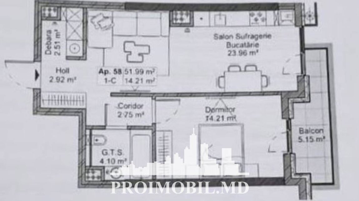 Vă propunem spre vânzare acestapartament cu 1cameră,sect. Buiucani, str. Calea Ieșilor, cu suprafața totalăde 52 mp. Compartimentat în: 1dormitor, living, bucătărie, bloc sanitar, balcon, debara, antreu. Dotări și finisaje: * Geamuri termopan; * Variantă albă; * Încălzire autonomă; * Conectat la toate comunicațiile. Este în imediată apropiere de: parc, grădiniță, școală, piață, cafenele, bancă, farmacii etc. Parcare de tip deschis, teren de joacă pentru copii. Acces facil la transportul public în orice direcție a orașului. (M.C.)Geamuri Ușă blindată Interfon Imobil nou Lift Zona de parcare Grădiniţă Piaţă alimentară Spital/clinică Teren de joaca Şcoală Supermarket. Telefon: 3737808888 Кишинёв, Буюканы Каля Ешилор Предлагаемвашему вниманию1комнатнуюквартиру,сект. Буюканы, ул. Каля Ешилор,общей площадью52 кв. м.Квартира состоит из:1спальня, гостиная, кухня, ванная комната, балкон, кладовка, прихожая.Имеет следующие преимуществa:* Стеклопакет;* Белый вариант;* Автономное отопление;* Открытая парковка;* Все коммуникации.Вблизи есть парк, школа, детский сад, аптека, супермаркет и т.д.Свободный доступ к общественному транспорту. (M.К.) 0 % комиссия для покупателя . Телефон: 3737808888