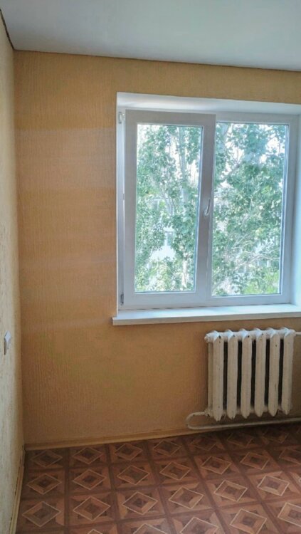 Площадь: общая – 32 м², комната – 18 м², кухня – 6 м². Санузел совмещенный (2,8 м²) в кафельной плитке. Квартира угловая, но теплая благодаря котельной во дворе.