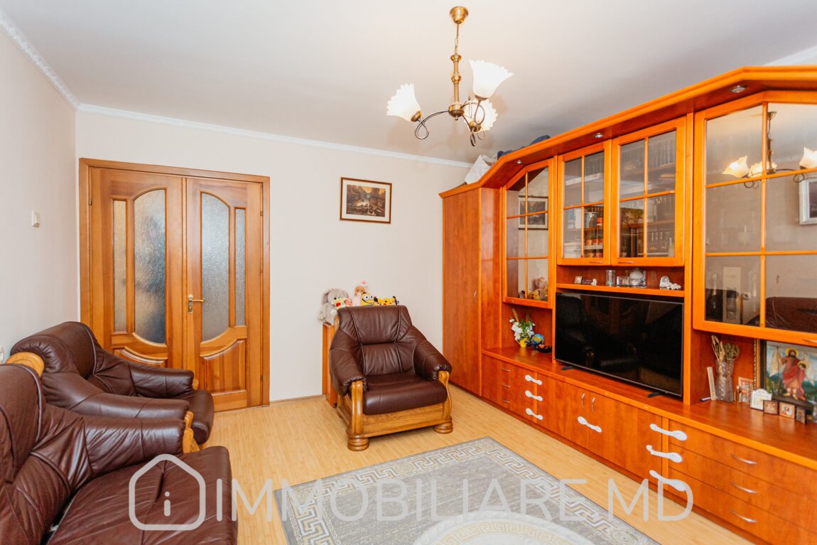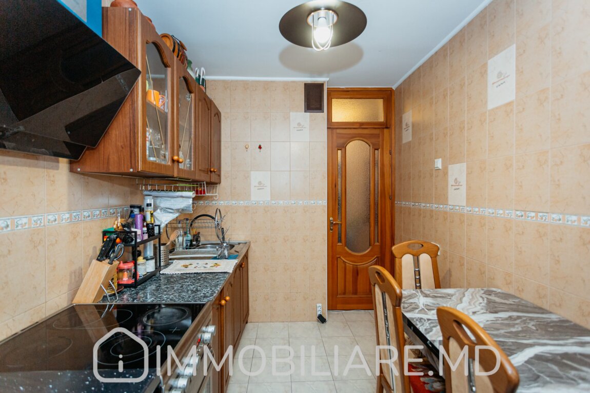 Apartament cu 3 camere, sect. Ciocana Vă propunem spre vânzare apartament cu 3 camere amplasat în sect. Ciocana, str. Mircea cel Bătrân. Zonă cu infrastructură bine dezvoltată. Acces facil la transportul public în orice direcție a orașului. Parcare de tip deschis și loc de joacă pentru copii. Suprafața totală de 70 mp. Nivelul 4/9. Apartamentul dispune de: – geamuri termopan; – toată mobila și tehnica necesară pentru un trai confortabil.