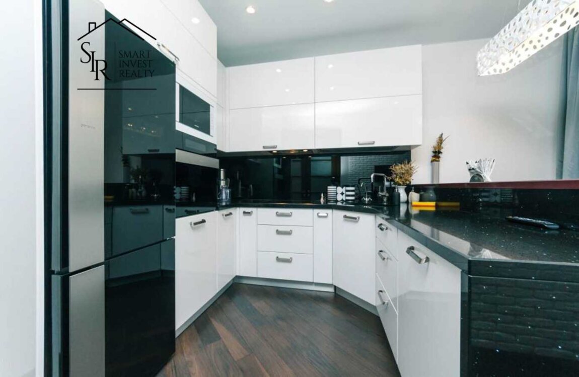 Квартира з авторським ремонт, чудовим внутрішнім оздобленням та ергономічним плануванням. Має два санвузли, простору вітальню та затишну спальню з гардеробною. Укомплектована усіма необхідними меблями та побутовою технікою. Комфортний під’їзд із картковим доступом, рецепція із консьєржем. Територія комплексу із цілодобовою охороною; наземне паркування та підземний паркінг. Шлагбаум на вїзд/виїзд; відеоспостереження за периметром комплексу.