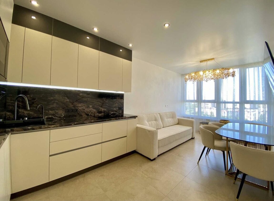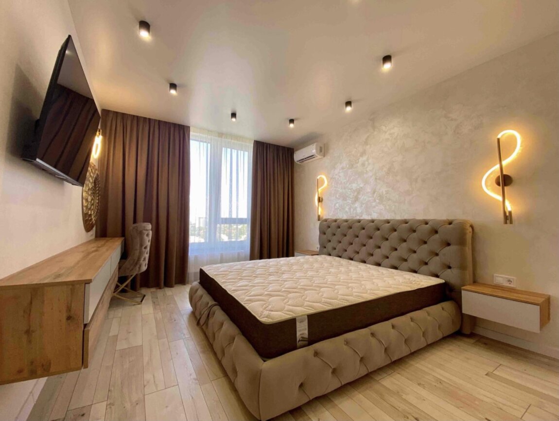 30579. Продам двухкомнатную квартиру в ЖК Модерн. 6 Ст.Б. Фонтана. Общая площадь 80 кв.м. Распланировано на две спальни, кухню студию 18 кв.м., санузел с ванной и душевой, гардеробные в каждой комнате. Вид на город. Квартира с новым современным ремонтом, укомплектована качественной, дорогой мебелью. В каждой комнате кондиционер. Вся мебель CARVELLI.Панорамное остекление. Вид на город и море.Закрытая придомовая территория. Круглосуточная охрана и видео наблюдение.